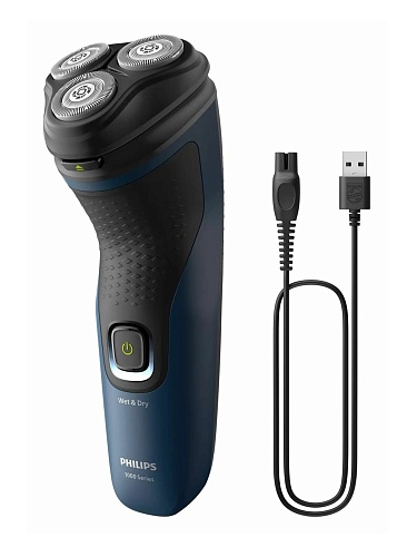 Корпус выполнен в синем цвете с чёрными элементами - современный, практичный и легко узнаваемый. Эргономичная форма удобно лежит в руке, не вызывая усталости даже при длительной работе. Габариты - 4 × 4 × 17 см, модель компактная и легко помещается в сумке. Нет лишних опций: ни дисплея, ни подставки - только надёжность, простота и эффективность. Подходит для тех, кто ценит качественную роторную бритву без лишней сложности.