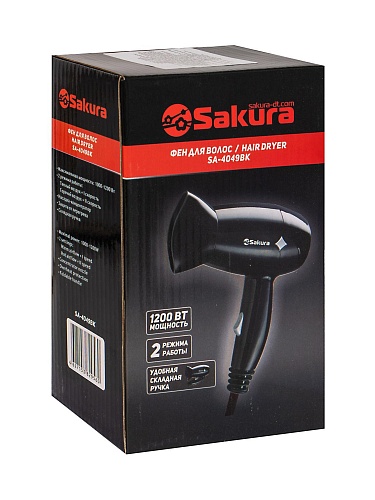 Фен Sakura SA-4049BK (компактный / 1200Вт / 2 режима / складная ручка)
