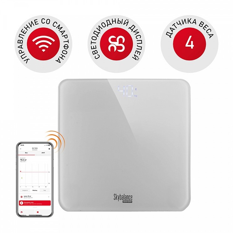 Скачайте приложение Ready for Sky REDMOND, чтобы воспользоваться всеми возможностями умных весов. Прибор измерит вес, проанализирует, сохранит данные и построит наглядный график изменений вашей массы тела.